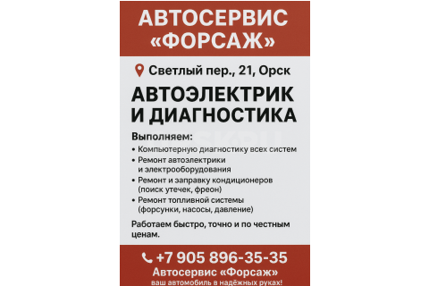 Автоэлектрик. Автосервис Форсаж. Диагностика электрооборудования и ремонт любой сложности. Оплата только...