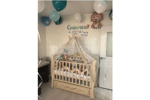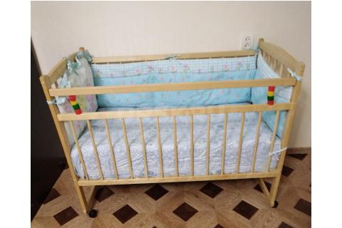 Продам Кроватка с маятником в отличном состоянии матрас, борты с шиты на заказ, стойка и балдахин.