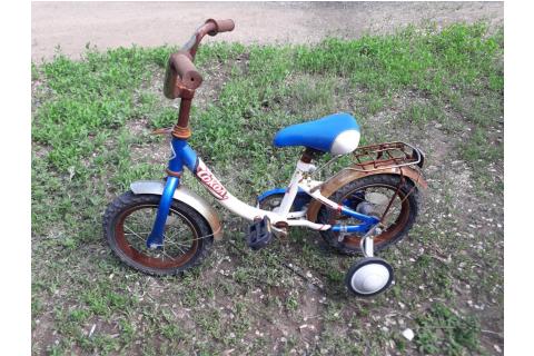 Детский велосипед Сокол. Байк в стиле Rat, нарочито показанная ржавчина. Недочёты спускает переднее