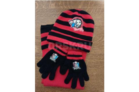 Продам вязанный шерстяной набор шапка шарф перчатки для девочки за 250 рублей и черная шапка с ушками...