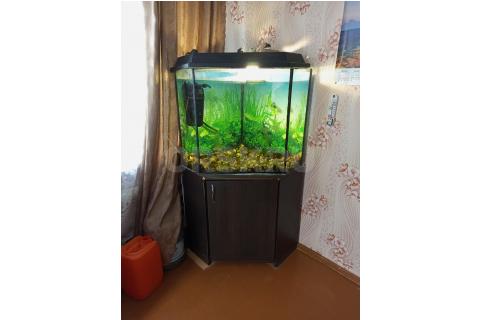 Угловой аквариум с тумбочкой, объем 160 литров, с крупными рыбками 11 штук, компрессором для воздуха...