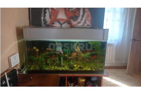 Продам аквариум с рыбками и растениями. Тумбой под аквариум, объём 200л. Торг