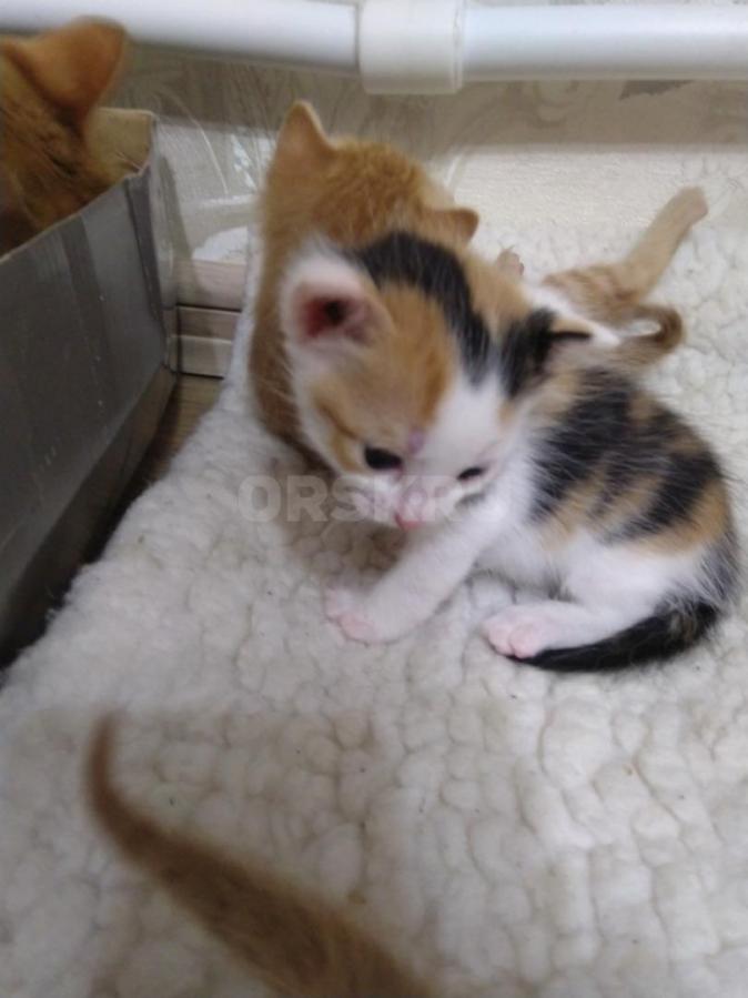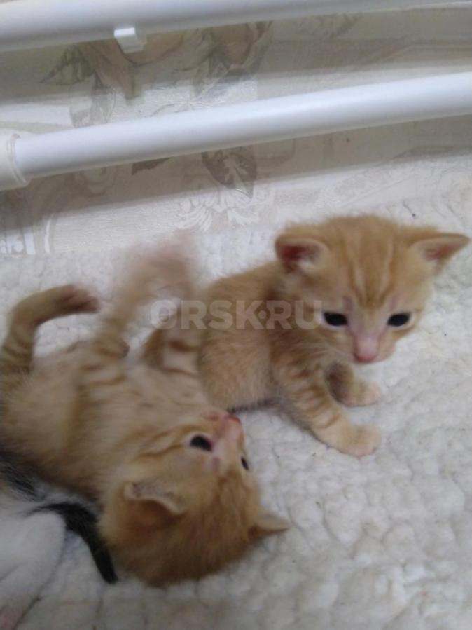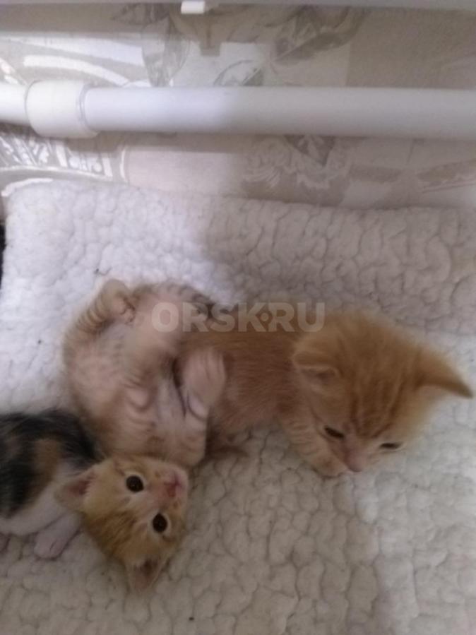 Отдам в добрые руки трёх котят. Трёхцветная - кошечка и два рыжих котика. Котята от кошки- мышеловки.