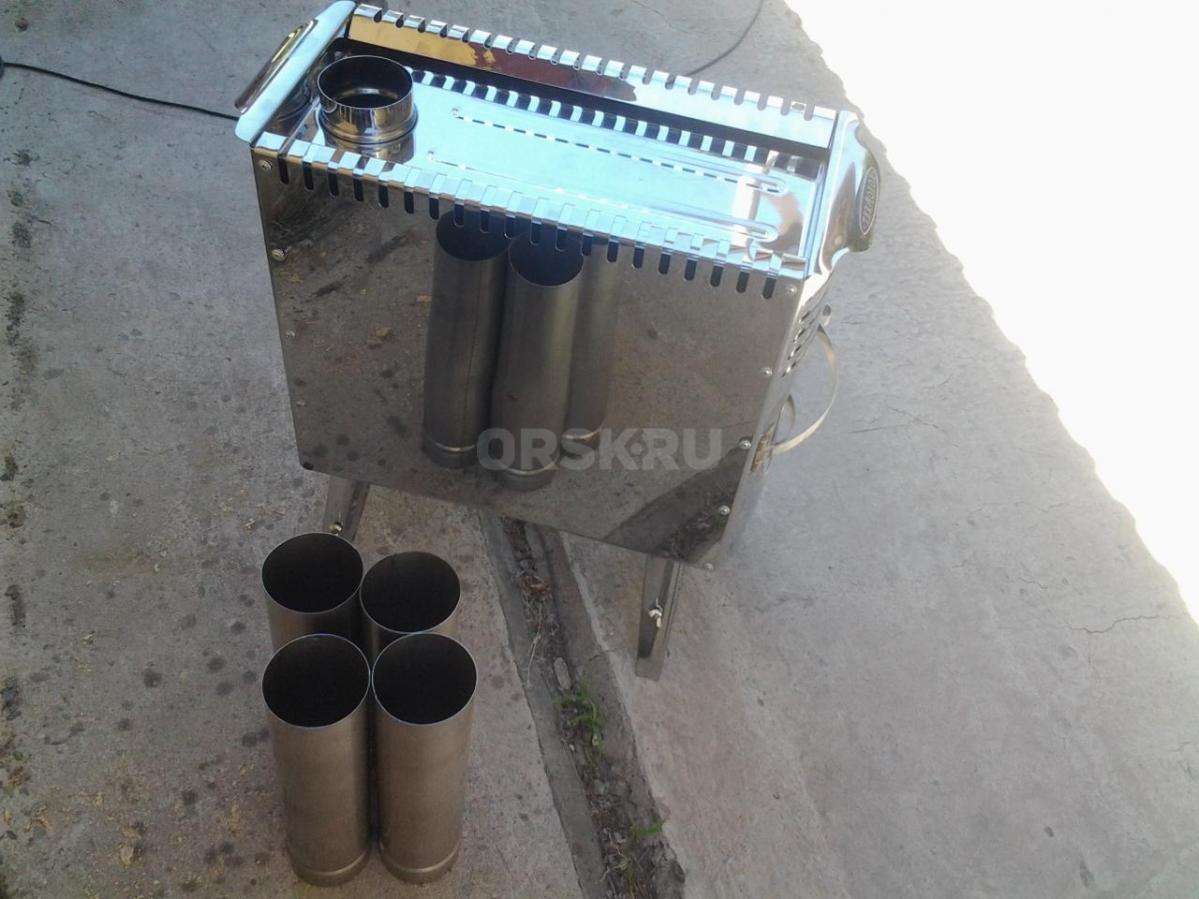 Печь портативная из нержавейки "пичуга". В комплекте ножки,стяжки,дымоход (6 колен по 30 см.