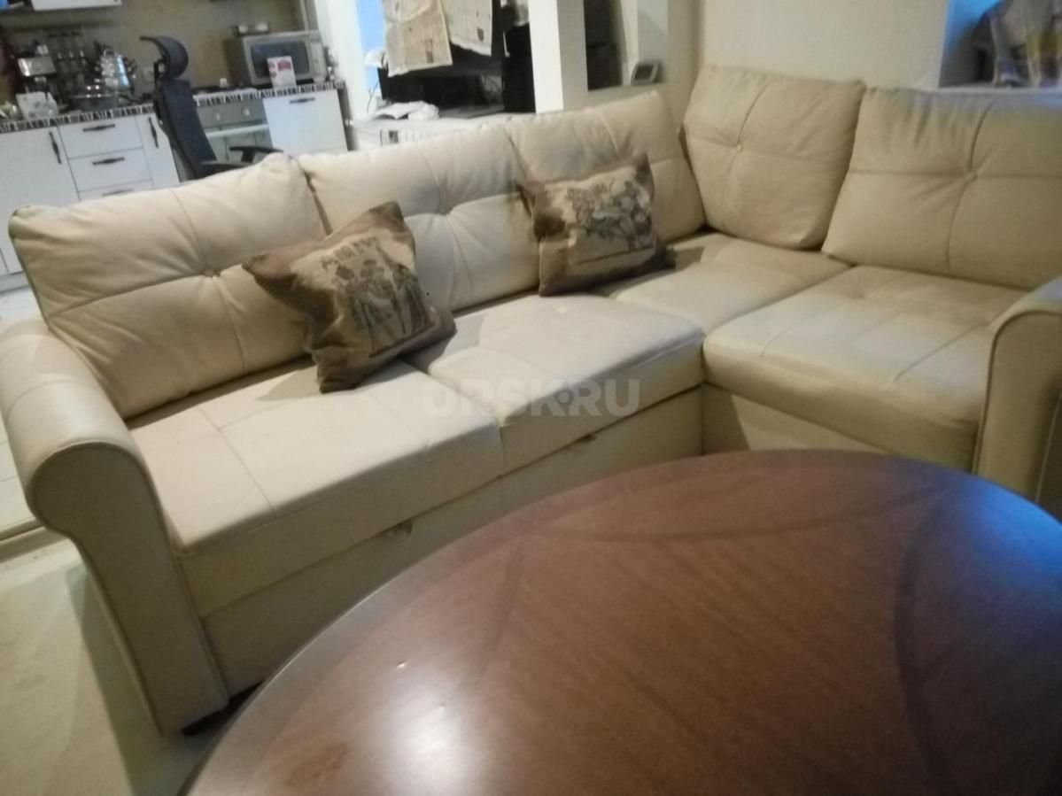 Продам угловой диван-кровать бежевого цвета за 45000 руб. из искусственной кожи.