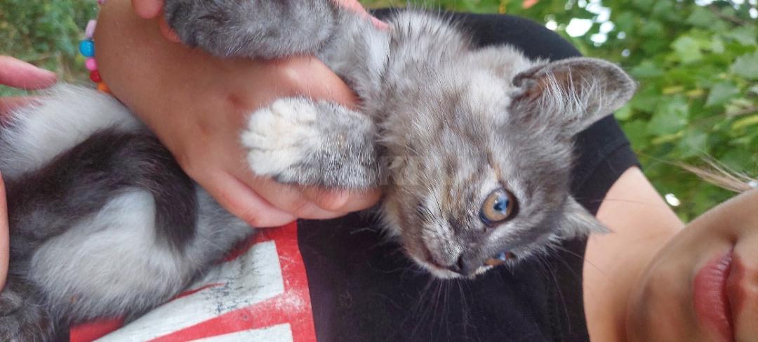 Маленькая серенькая кошечка 2-2, 5 месяца осталась совсем одна на улице. В еде не привиредлива, игрунья...