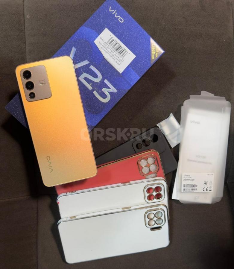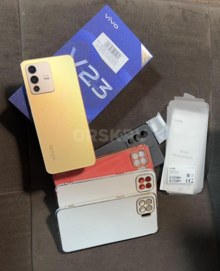 Продам 6.44" Смартфон Vivo V23 5G 128 ГБ (золотой брилиант или звёдная пыль)), ядер - 8, 8 ГБ, 2 SIM, AMOLED, 2400x1080, камера 64+8+2 Мп, NFC, 5G, GPS, 4200 мА*ч в идиеальном состаянии, лежал в кабинете пару месяцев. Полностью в комплектации. Подарю все чехлы, а их много и тоже новые.В магазинах везде цена - 40.990=