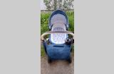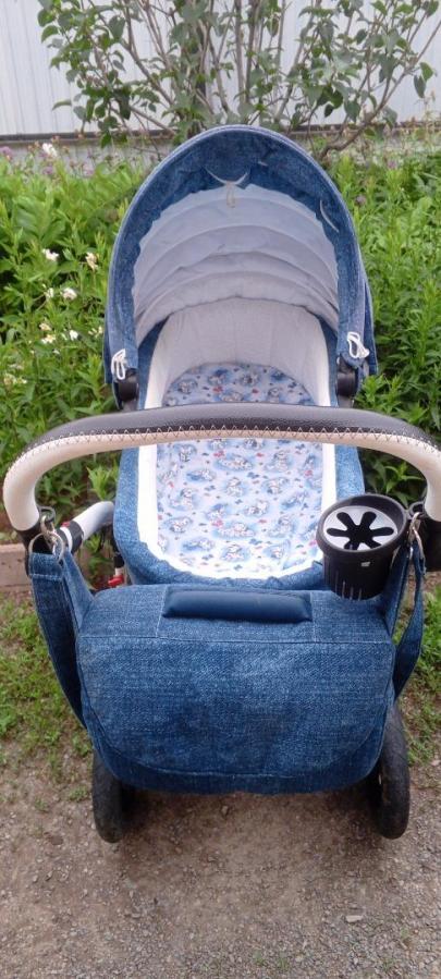 В комплекте силиконовый дождевик, матрасик, обивка 100% хлопок, муфты-варежки, занавески, держатель для бутылочки, сумка для мамы.