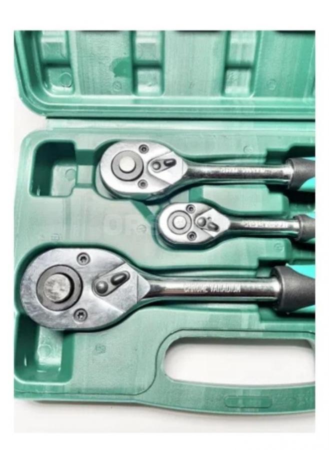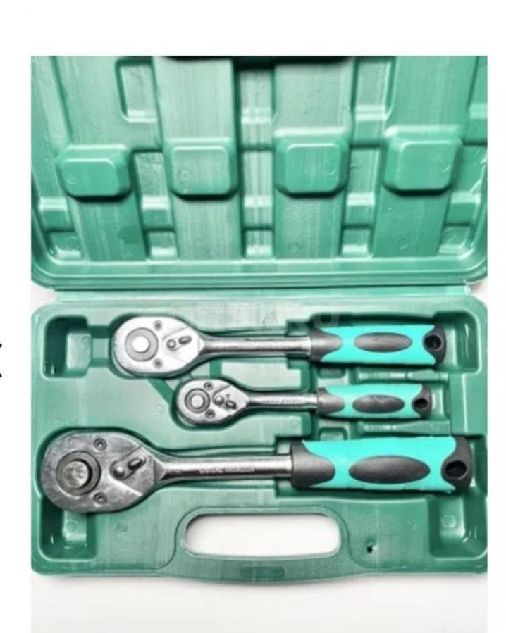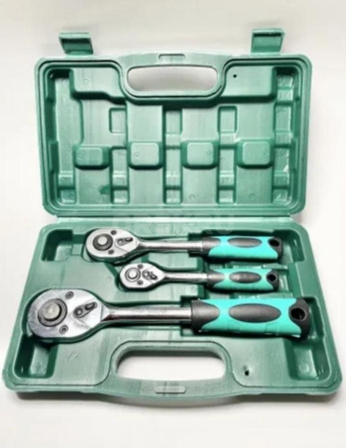 Набор трещоток 24 зуба 1/2, 3/8, 1/4. 3 предмета в кейсе. Долговечный ключ - трещотка; практичный и качественный, изготовлен из хромо-ванадиевой стали высокого качества. Трещотка увеличивает скорость работы,. реверсивный механизм для закручивания и откручивания, идеальный плавный ход; надежный механизм. Переключатель реверса; легкая замена насадки; универсальный для всех типов соединения. Эргономичная ручка; не соскальзывает во время работы, незаменим при обслуживании авто.