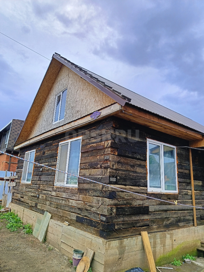 Утопленник. В очень хорошем состоянии да и что шпалам будет. Вода была не долго. Крыша не тонула вообще. Строили для себя на совесть. 77 квадратных метров. Цена очень занижена так как сроки поджимают.