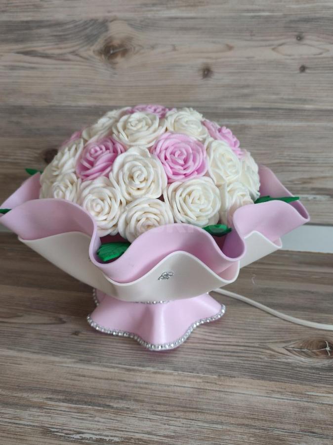Букетик-светильник-это прекрасное дополнение для вашего интерьера!Нежные цветочки розочек, пионов отлично...