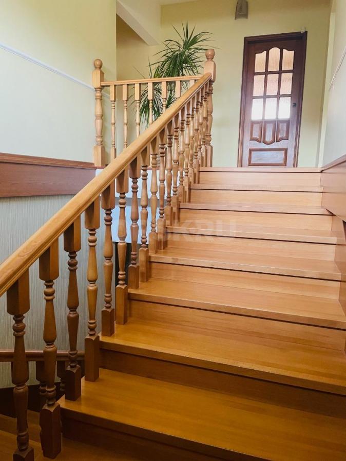 Текст объявления: Продам 2-х этажный коттедж,экологически чистый район ОЗТП, участок 15 соток с ландшафтным дизайном.Есть плодовые деревья,кустарник. 5 жилых комнат, 2 санузла, в подвале спортивный зал. Один открытый балкон, одна закрытая лоджия. С первого на второй этаж ведет лестница из бука.Газовый котел Rinnai(Япония). Деревянные окна со стеклопакетами.В 5-ти минутах конечная остановка маршрута №55.Недалеко протекает речка Кумачка.