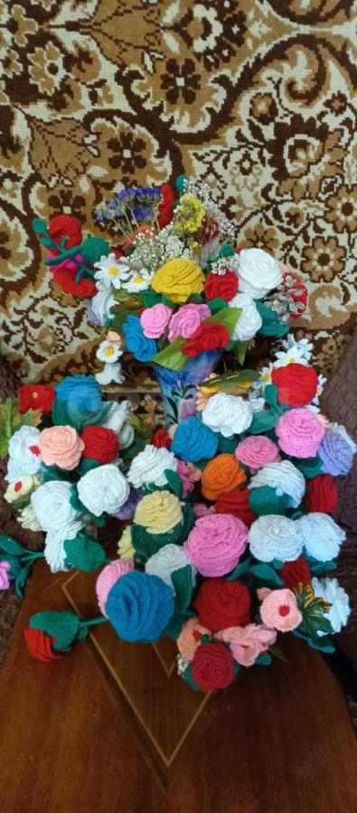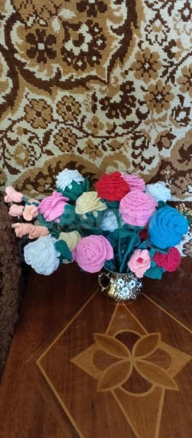 Розы вязанные, украсят ваш интерьер. Прекрасный подарок к празднику.Вечная красота . На ваш выбор . Можно на заказ.
