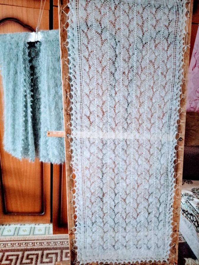 Оренбургская пуховая паутинка, ручная работа .Пух обработан вручную,прядено и вязано вручную на спицах .При носке разносится и будет как пуховый платок.также вяжу палантины-шарфы, кардиганы белого и серого цвета.Район 240 кв.цена шарфа 1800(белого,серого и,полосатого цвета. паутинка 2800.кардиган цена зависит от размера.