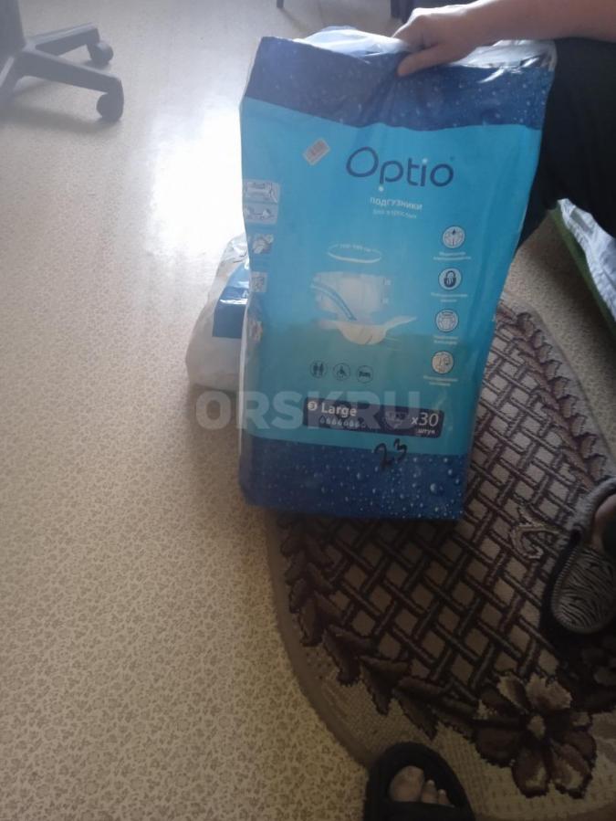 Подгузники для взрослых optio размер L 100-160 см объем 10 шт за 800 р., упаковка детских памперсов