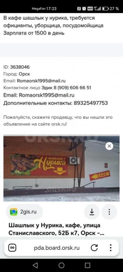 В кафе шашлык у Нурика, требуются официанты/ки, уборщики/цы, мойщики/цы посуды.