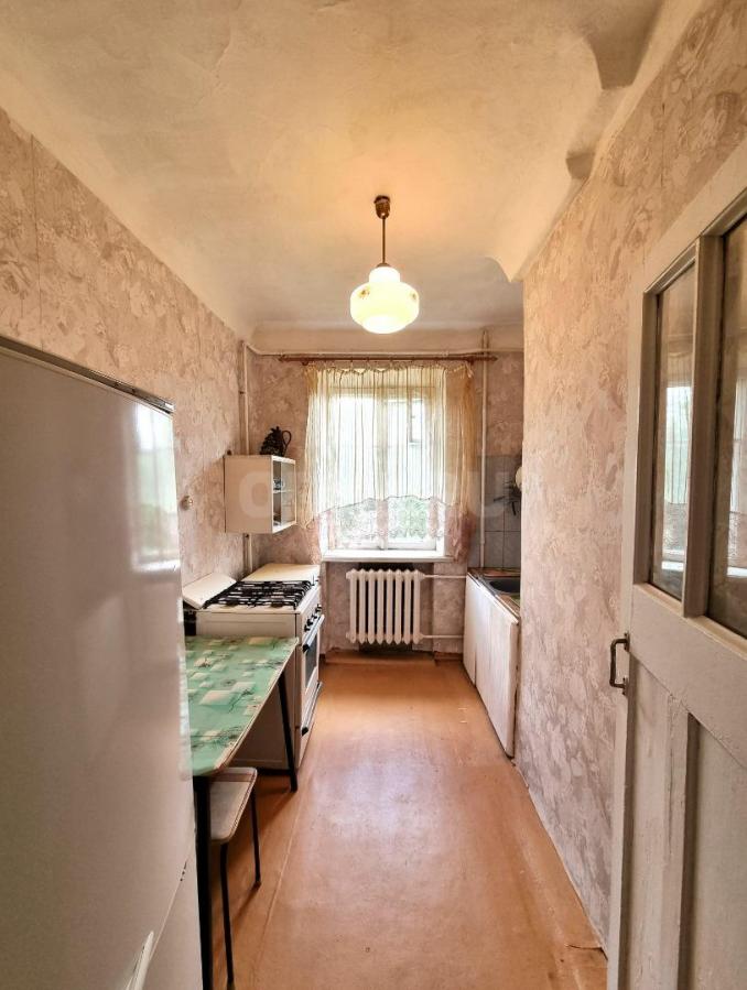 Удобная планировка: просторный коридор, три раздельные комнаты, кухня и совмещенный санузел. Квартира без современного ремонта, в пригодном для проживания состоянии. Канализация, отопление, водоснабжение, газ – все центральное. Горячая вода от газовой колонки. Есть застекленный балкон.