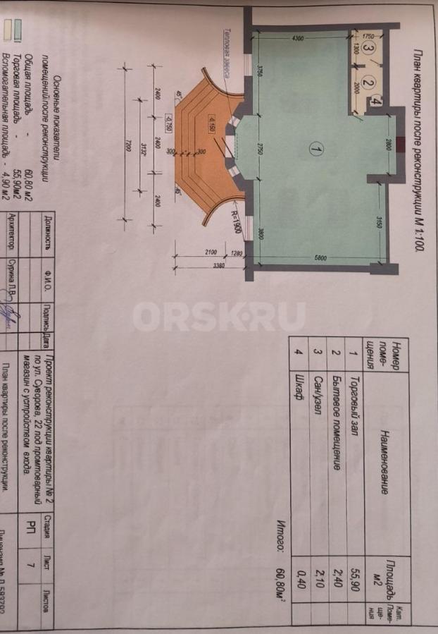 Помещение расположено на 1 этаже трехэтажного дома сталинской постройки, с высотой потолков 3 метра, общей площадью 61,2 м. кв.