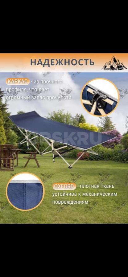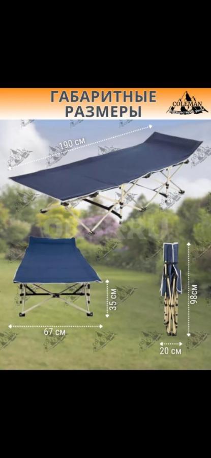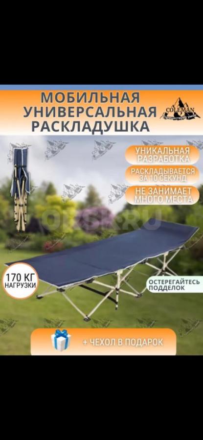 Новая. Раскладушка "TopCamping" отлично подойдет для отдыха на дачном участке или выездного пикника. Благодаря инновационной конструкции кровать занимает минимум места в багажнике и раскладывается за несколько секунд без особых усилий, с этим справится взрослый и ребенок. Туристическая раскладушка для сна станет незаменимым помощником в семейном походе или пикнике, забудьте о холодной земле или пенках. Кемпинговая раскладушка выдерживает вес до 200 кг. Каркас туристической кровати выполнен из высокопрочной стали, хорошая устойчивость обеспечивается также за счет специальной треугольной силовой конструкции ножек. Шезлонг раскладушка станет специальной треугольной силовой конструкции ножек. Шезлонг раскладушка станет летней раскладушки с высокой прочностью на растяжение обеспечит качественный отдых и сон. Раскладную кровать лежак можно использовать как мебель не только в дачном доме.