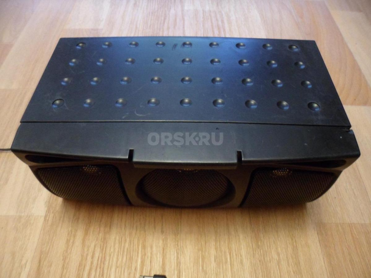 Пассивная колонка. Небольшая, размеры: 27 см (ширина) х 11 см (высота) х 15 см (глубина). Разъем подключения: jack 3,5 мм. Длина шнура - около 1 метра. В верхней части колонки имеются заводские прорези для её фиксации в подвешенном состоянии. На дне, в нижней части корпуса есть небольшой дефект никак не влияющий на функционал (видно на последнем фото), за исключением него колонка полностью рабочая.