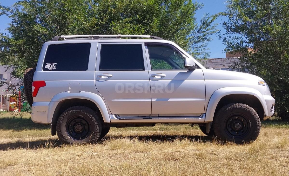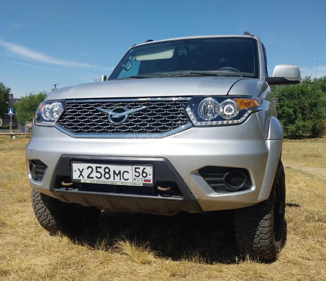 Текст объявления: УАЗ Патриот ноябрь 2017г, один хозяин, пробег 117т.км, состояние отличное. Новая резина Maxxis Razr 245/75/16(Тайвань 24г), нов аккумулятор и стартер, заменяно масло в мостах и коробках. Установлено ГБО (узаконено), сигналка Pandora, лебедка - кевлар, автономка салона, с новья обработана антигравием и мовилем, кастор 9 градусов, выведены сапуны, защита рулевых тяг и коробки, блок заднего диффа и хабы, лифт подвески 20мм. Зимний комплект колес на дисках. Срочная продажа.