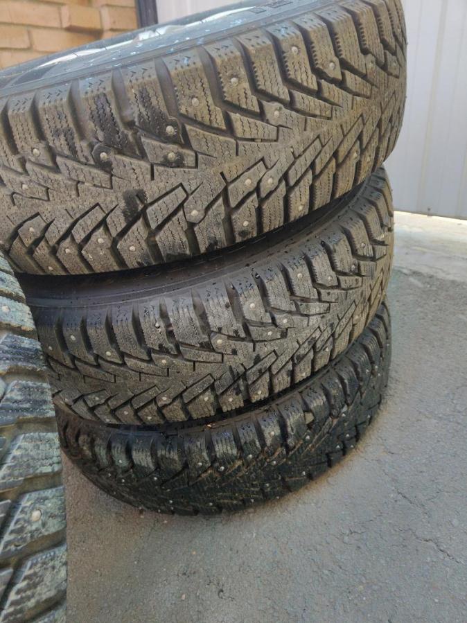 Продам б/у комплект зимних шипованных шин 205/55/r16 три баллона Нокиан Хакка 5, один Сайлун Айс Блейзер...