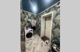 По всей квартире натяжные потолки с точечным освещение.
