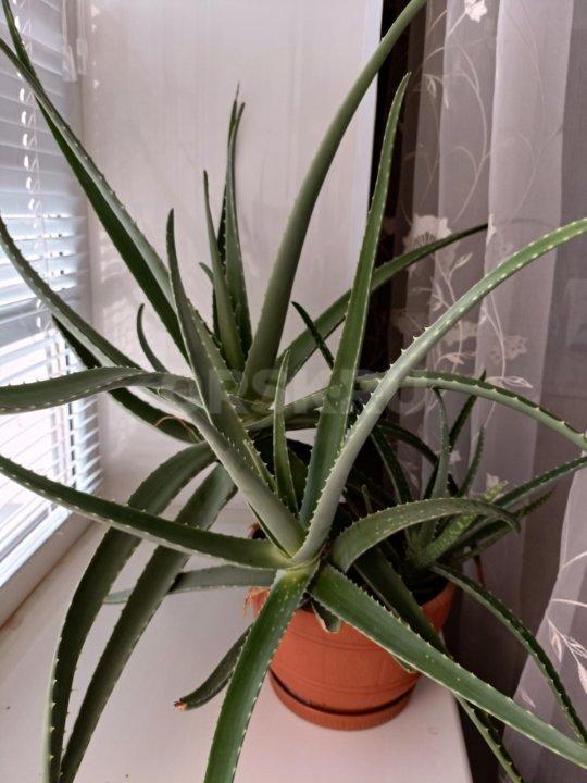 Цветок алоэ Вера. Взрослое растение, 7 лет, в одном горшке три больших цветка - 1100