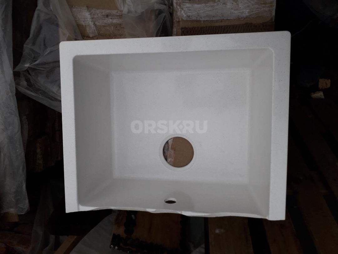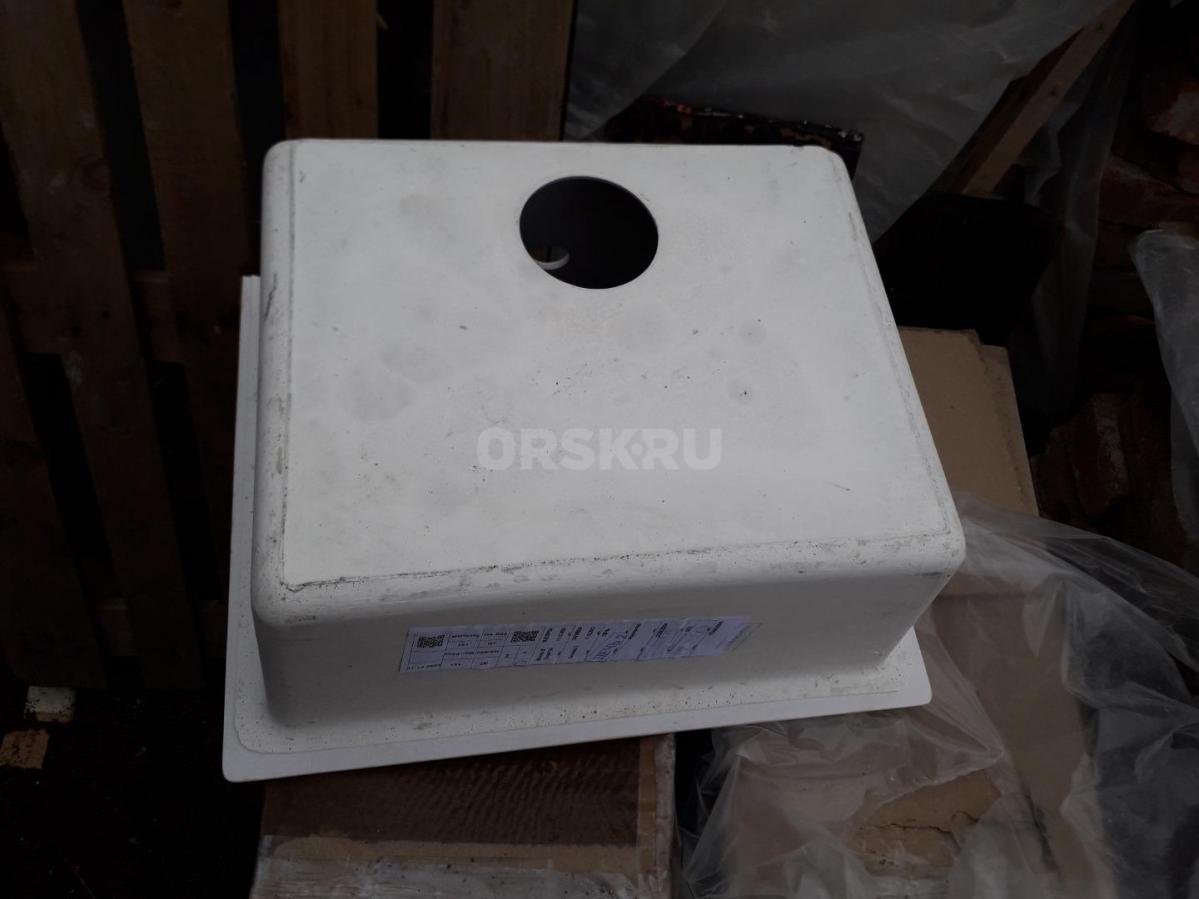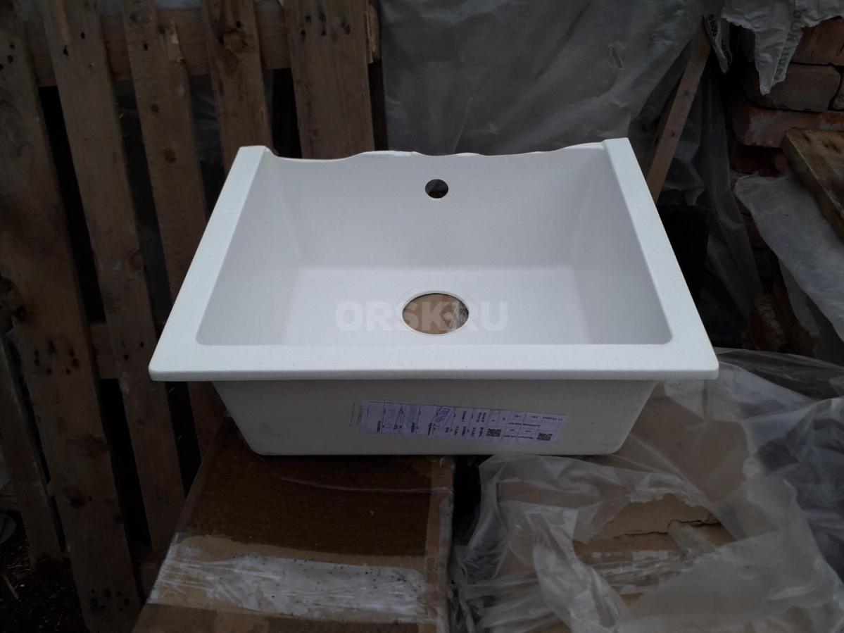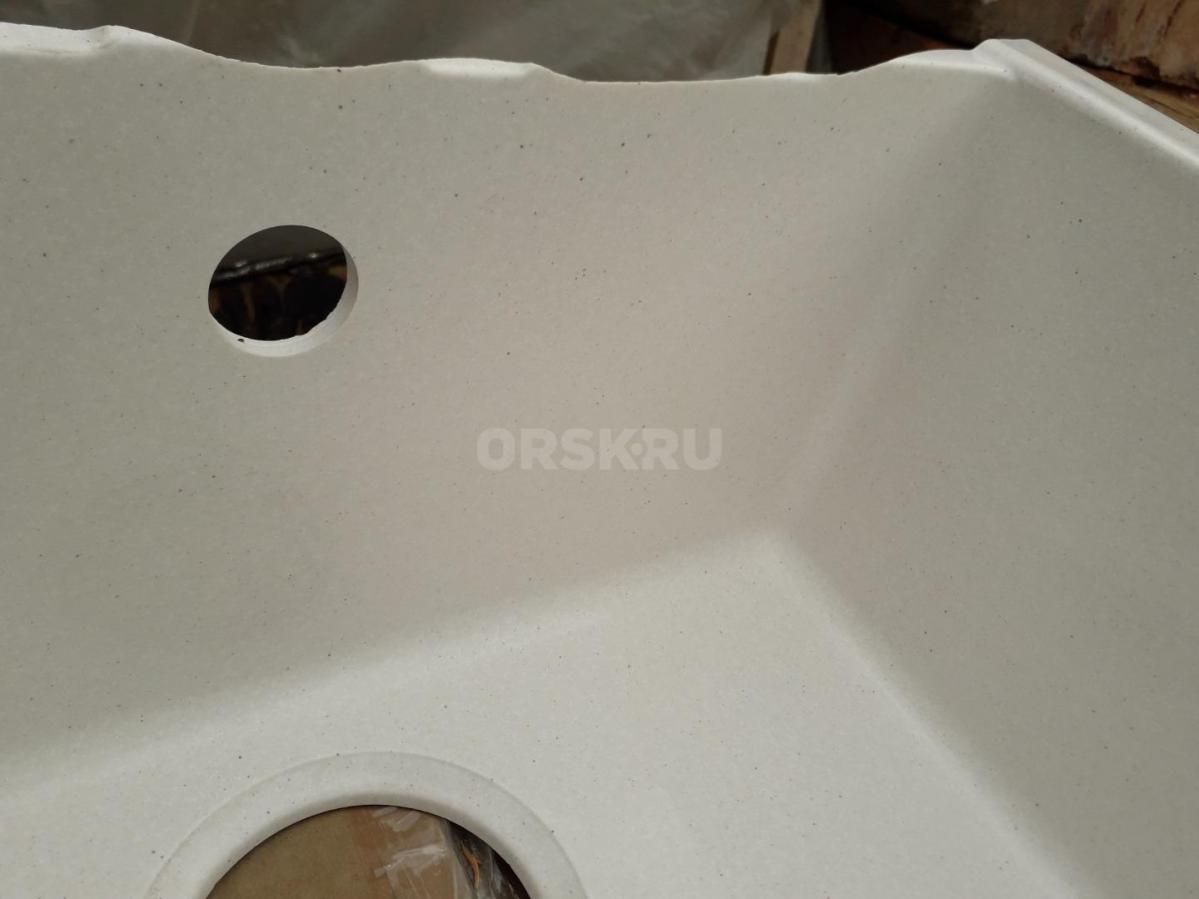 Глянцевая каменная мойка Катрин повреждена - отломлена полка. Новая. Цвет Хлопок