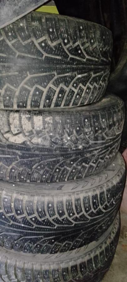 Продам б/у комплект зимних шипованных шин 205/55/r16 три баллона Нокиан Хакка 5, один Сайлун Айс Блейзер...