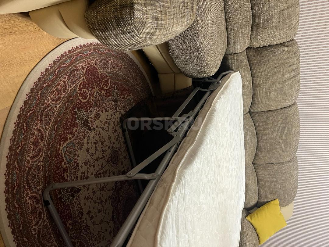 Продам угловой диван-кровать бежевого цвета за 45000 руб. из искусственной кожи