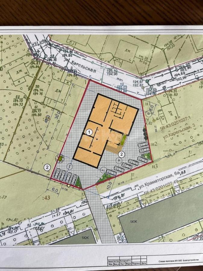 Текст объявления: Продам (обмен) участок 12 соток с домой (под снос). Участок находится в центре города по ул. Карельской д.5 с развитой инфраструктурой, рядом расположены ТЦ «Универмаг», кинотеатр «Орск», кафе, рестораны, школа. Участок огорожен полностью забором из профлиста, имеет выезд как на ул.Карельскую так и на ул.Краматорскую. Имеется проект под жилой дом и нежилое помещение на 1700м2 (размещение гостиницы). Все коммуникации центральные, один собственник, документы готовы к продаже.