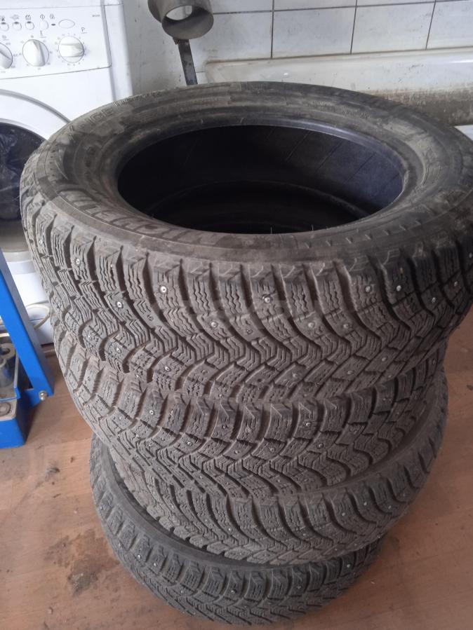 Продам б/у комплект зимних шипованных шин 205/55/r16 три баллона Нокиан Хакка 5, один Сайлун Айс Блейзер...