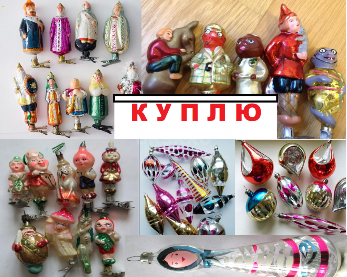 КУПЛЮ елочные игрушки производства СССР, ватные, стеклянные, бумажные, картонные, другие елочные украшения - гирлянды, мишуру, конфетти, дождик, снежинки, Дедов Морозов и Снегурочек.