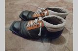 Продам лыжи деревянные мужские с ботинками и палками, б/у, СССР. Размер ботинок 43. Высота лыжи 200 см.