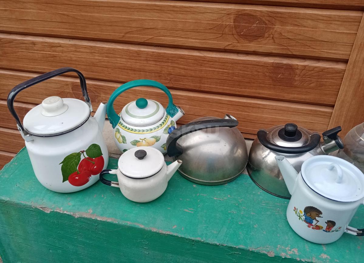 Скороварка кастрюля 6 литров за 1800 руб.., 2 чайных сервиза на 3 и 5 персон по 500 руб. каждый.