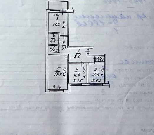 Квартира с удобной планировкой – просторный коридор площадью 8,6 м2, из которого выходят три раздельные комнаты площадью 17,7 м2, 11,7 м2 и 9,9 м2, раздельный санузел и кухня. Также в квартире имеется удобная кладовая, где проходят канализационные и водопроводные коммуникации, при желании можно использовать как бытовую комнату для стиральной и сушильной машинок. Пол во всей квартире бетонный.