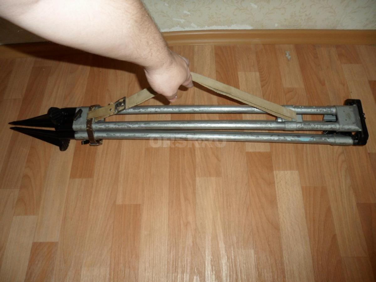 Штатив, тренога для буссоли, теодолита, нивелира в хорошем состоянии. Полностью металлическая, очень устойчивая и жесткая тренога производства СССР. Примерно 80-ые годы. Тренога в полностью рабочем состоянии, максимальный вылет ноги - 160 см. Имеется крюк для подвешивания отвеса, ремень для переноски треноги, а также чехол, который позволяет не только хранить и транспортировать треногу, но и зачехлять (например на время обеденного перерыва и т.п.) установленный на треноге нивелир, теодолит или другой прибор. Ну а так в целом состояние и комплектность на фото.