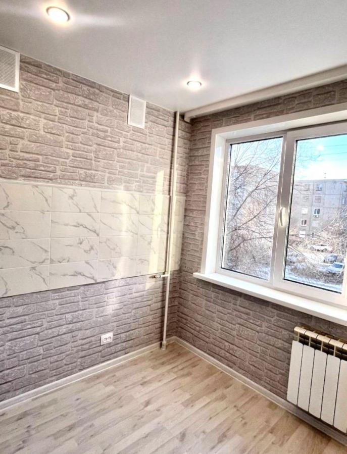 -На кухне фартук из кафеля (остается поставить кухонный гарнитур на свой вкус).