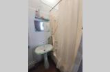 Санузел совмещенной, стоят пластиковые трубы, приборы учета воды и света.