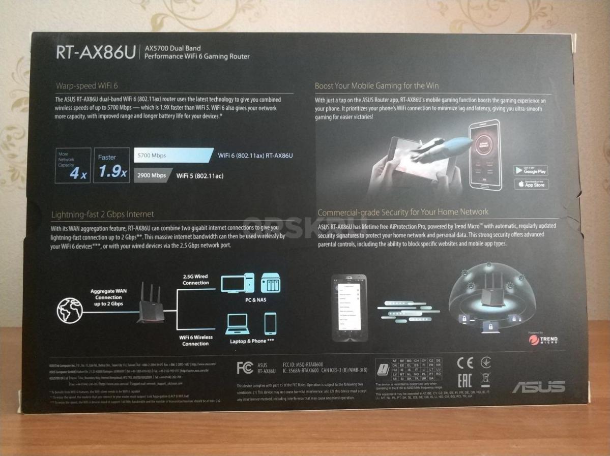 Роутер ASUS RT-AX86U в идеальном состоянии. WiFi 6 (802.11ax), AX5700, 2.4 ГГц+5 ГГц, технология AiMesh, скорость соединения до 5700 Мбит/с. Полный комплект пoставки: упаковка, документация, блок и кабель питания, RJ-45 кабель, антенны Microtik. Aппаpaт быcтрый и надежный.