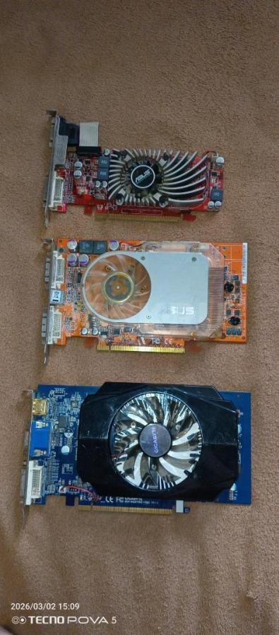 Есть много железа для пк , все старое , 2 материнки , 2 блока питания , а так выставляю видеокарты , 2 от асрок 1 от гигабайта , 2 видеокарты идут по 1 гб ддр 3 памяти , 3 256 мб ддр 2 памяти , срок продою 250 р за штуку , а гигабайт за 1000 р
