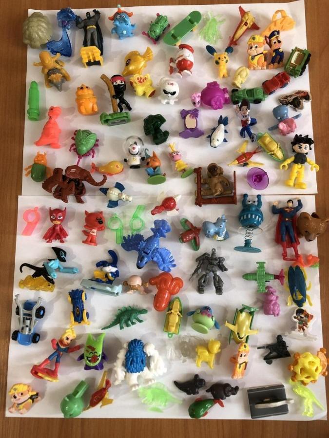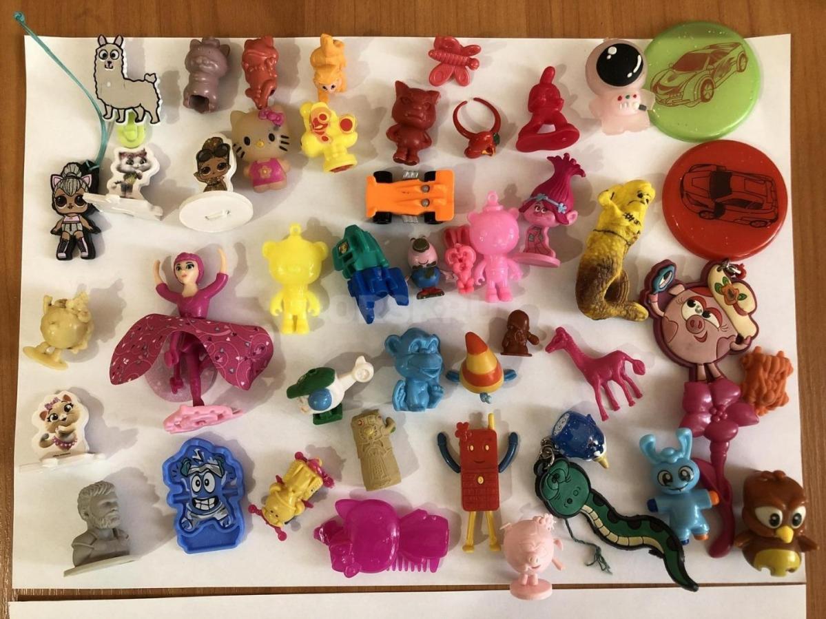 Собачка на лежанке, хвостиком виляет-350 руб., дракончик -350 руб., собачка ходит и лает, фербер меняет цвет пайеток с синего на красный, лабиринт, головоломка - по 100 руб., игрушки из киндер- все за 500 руб., на фото не все