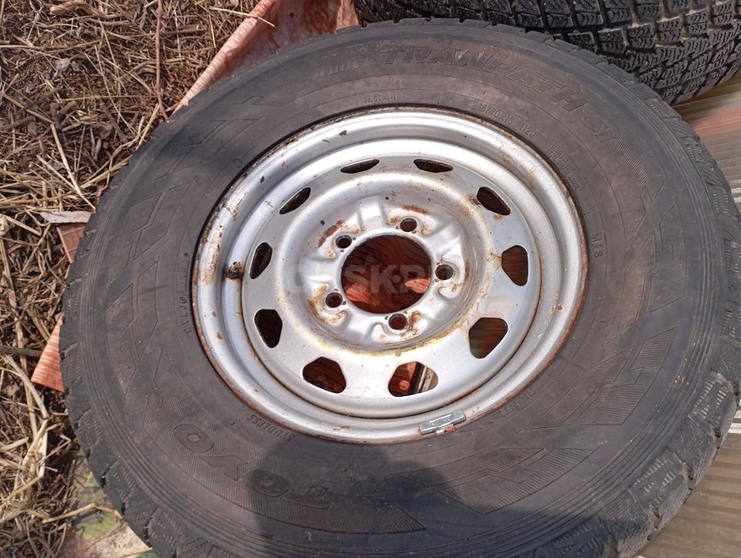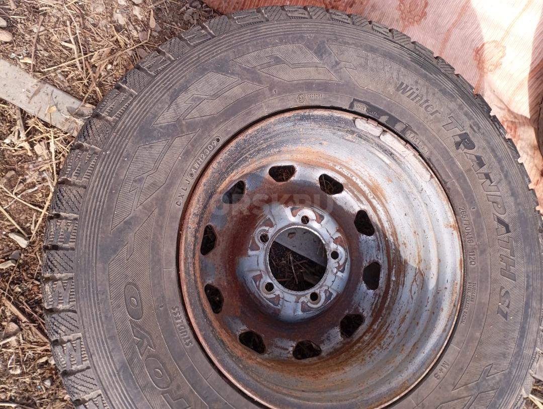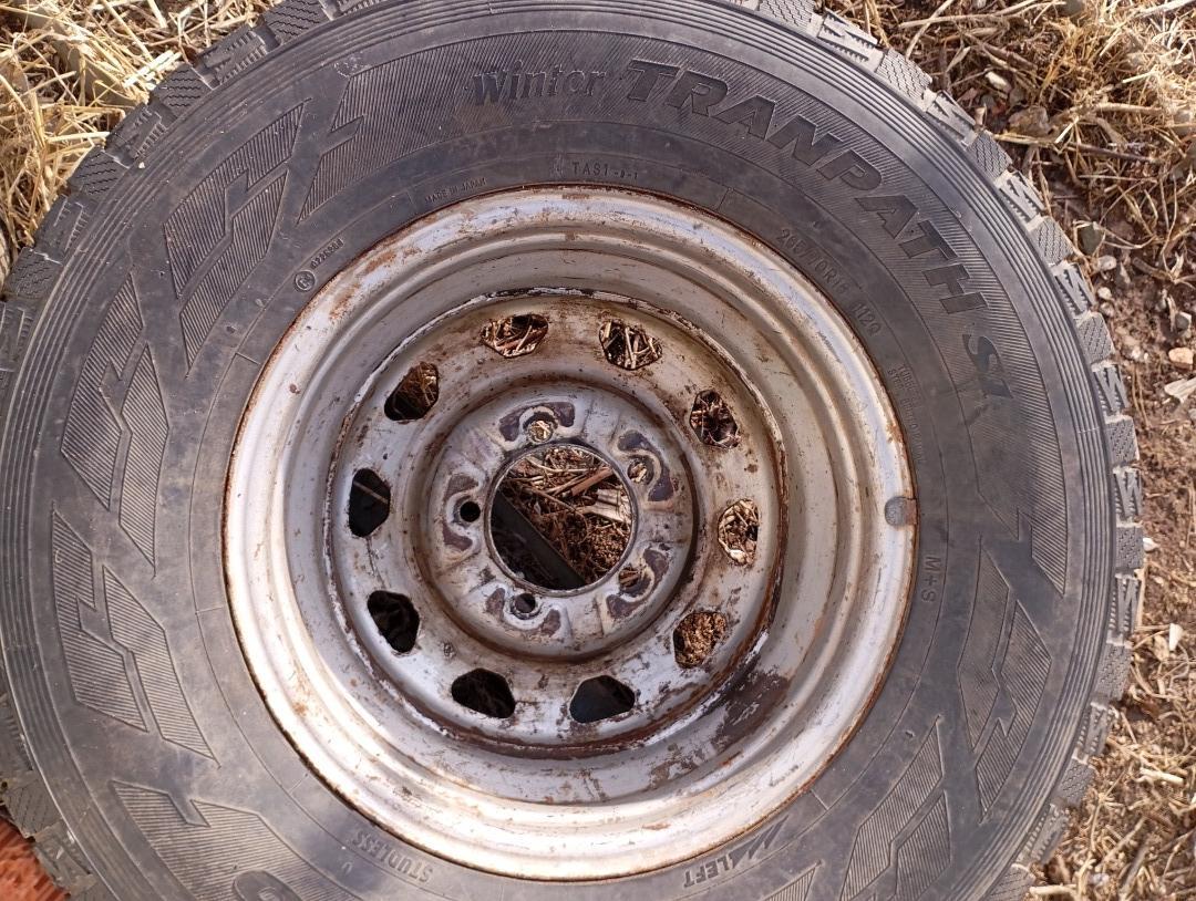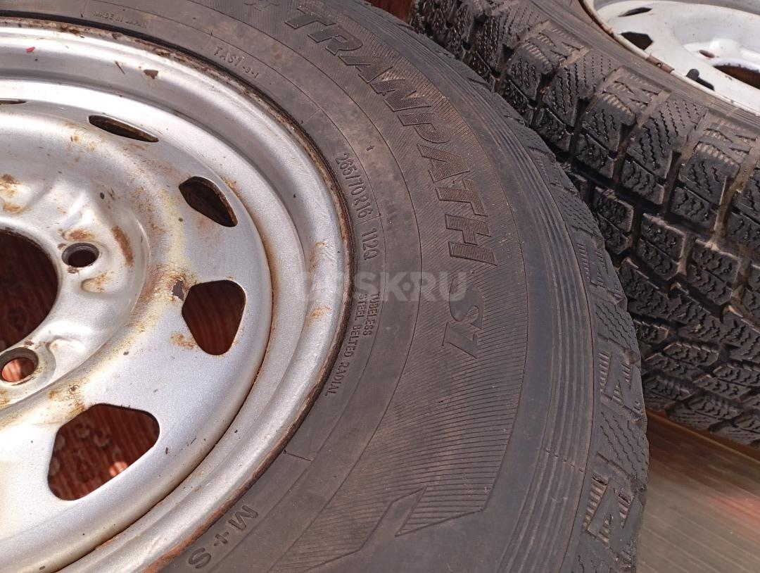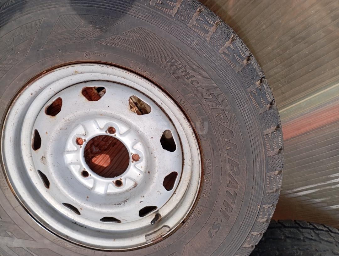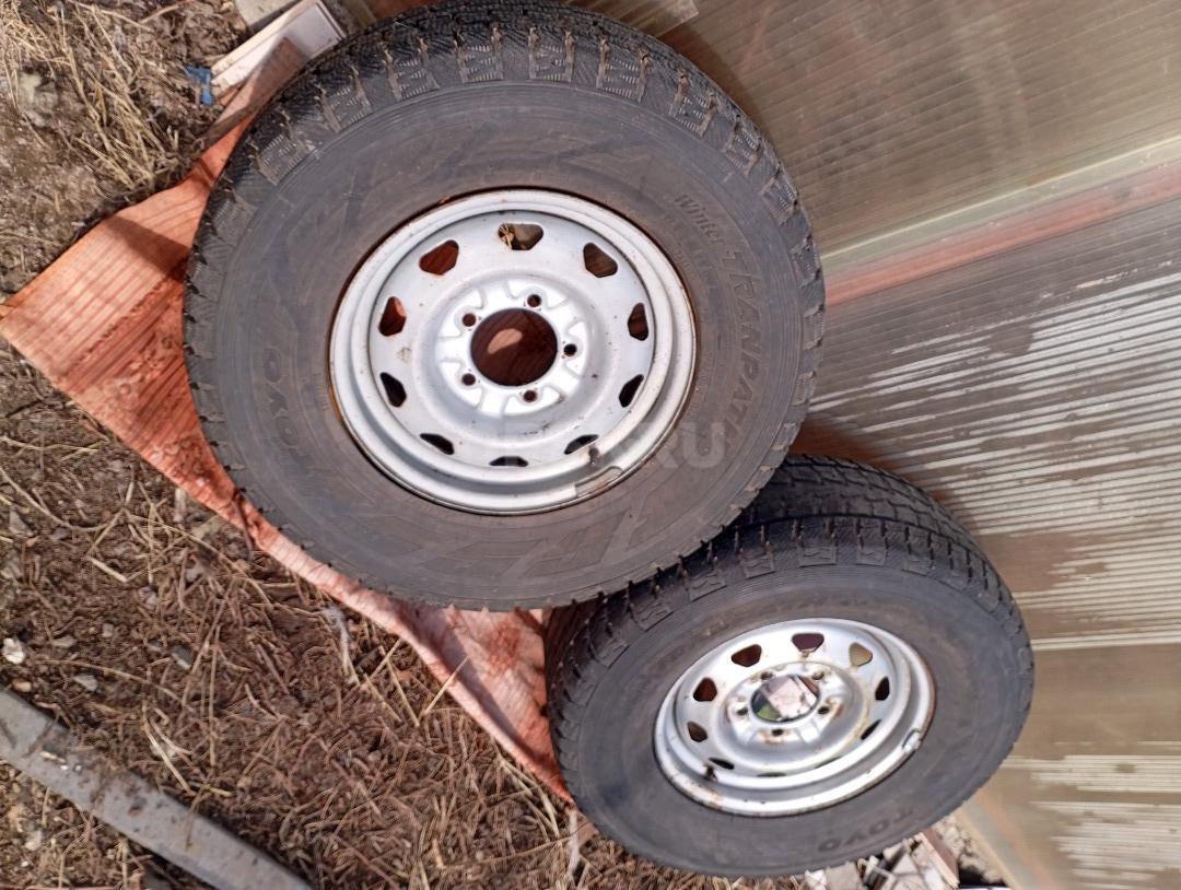 На УАЗ Патриот два колеса б/У на штампованных дисках летние шины "TOYO Winter TRANTPACH S1" с разным износом (10 и 75%%). Размер 185х70 R16 оба за 6000 руб.