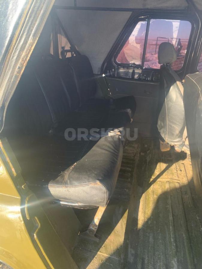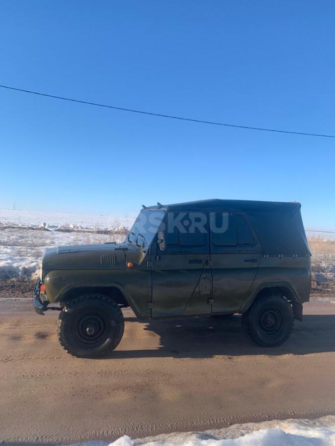 Текст объявления: Уаз 98 год, в отличном состоянии, на военных мостах в отличном состоянии, тент новый, двигатель работает отлично, КПП раздатка тоже ничего не выбивает, с документами полный порядок, по электрике все работает, кузов ровный не гнилой, рама целая, внешка очень приятная, цена 185000 тыс без торгов, находится в Новоорске. Тел 89018896197.