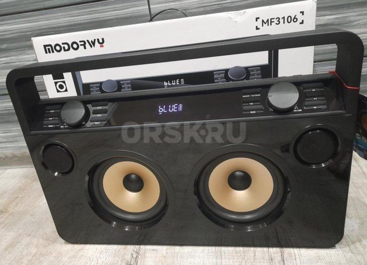 Два динамика, мощные басы, корпус из толстого пластика!
