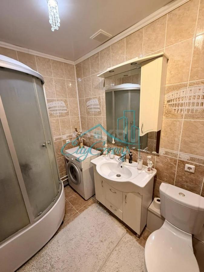 Санузел совмещенный в кафеле. При продаже в квартире остается полностью мебель в гостинной, кухонный гарнитур, два кондиционера и два вместительных шкафа для хранения.