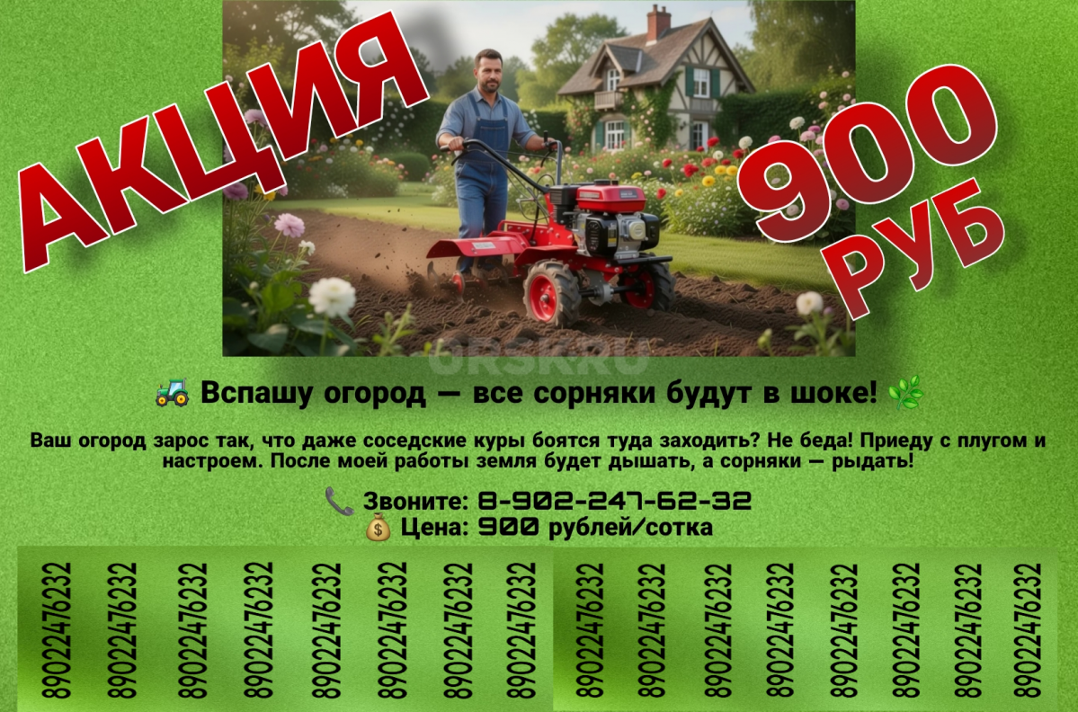 Вспашка земли японским мини-трактором. Разработка брошенных огородов. Работаем по садам Орска Меридиан...
