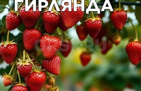 Рассада ремонтантной клубники со вкусом земляники «Гирлянда». Ягоды округлые, слегка вытянутые к заострённому кончику весом около 30г красного, с блеском и небольшим розовым отливом цвета, сладкого вкуса, с характерным ароматом клубники и сочной, но плотной мякотью с урожайностью до 1,5 кг с куста за сезон.
