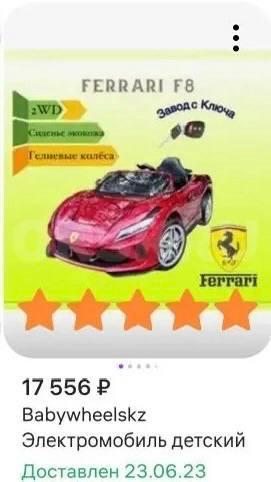 Продам красную феррари. Запуск с ключа, музыка с флешки, управление через педаль + пульт управления для родителя. Ездили мало, состояние хорошее, покупали 3г назад, стояла без зарядки (аккум под замену) покупали за 17к на вб, продаю за 6.000₽ (г.Гай)